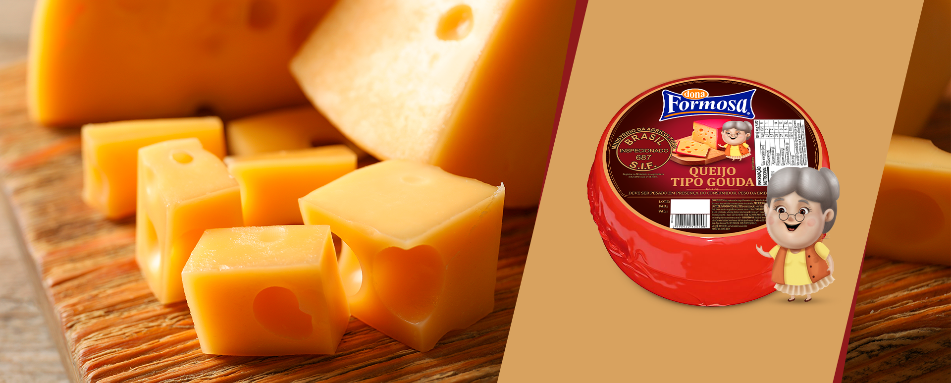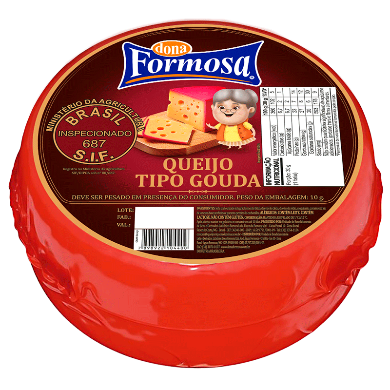 Leite pasteurizado integral, fermento lático, cloreto de cálcio, cloreto de sódio, coagulante, corante extrato de urucum base norbixina e corante carmim de cochonilha.